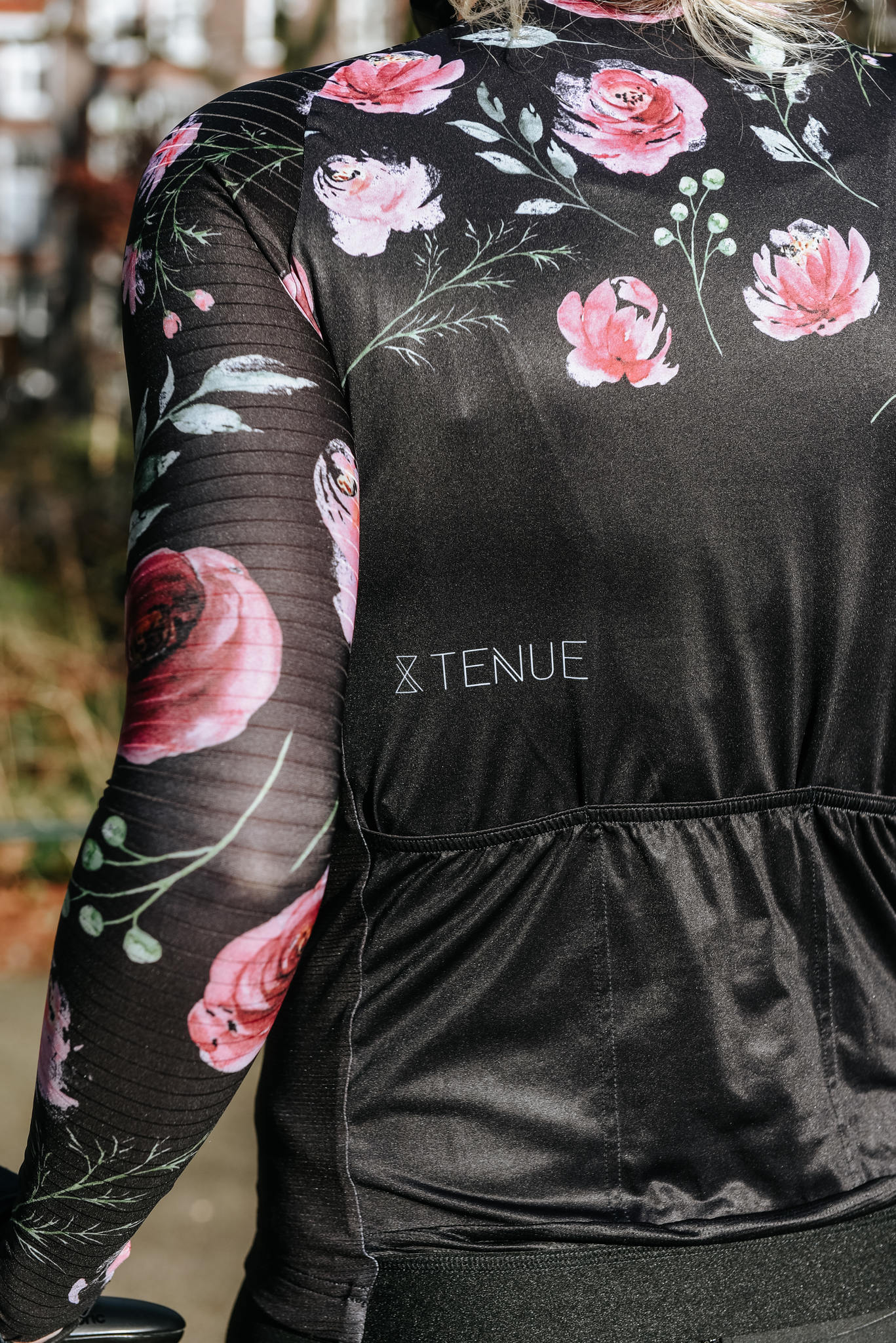 Kies voor het fietsshirt dames lange mouwen zwart met rozen van TENUE des Femmes en ervaar het verschil tijdens elke rit – van lange tochten tot koffiestops.